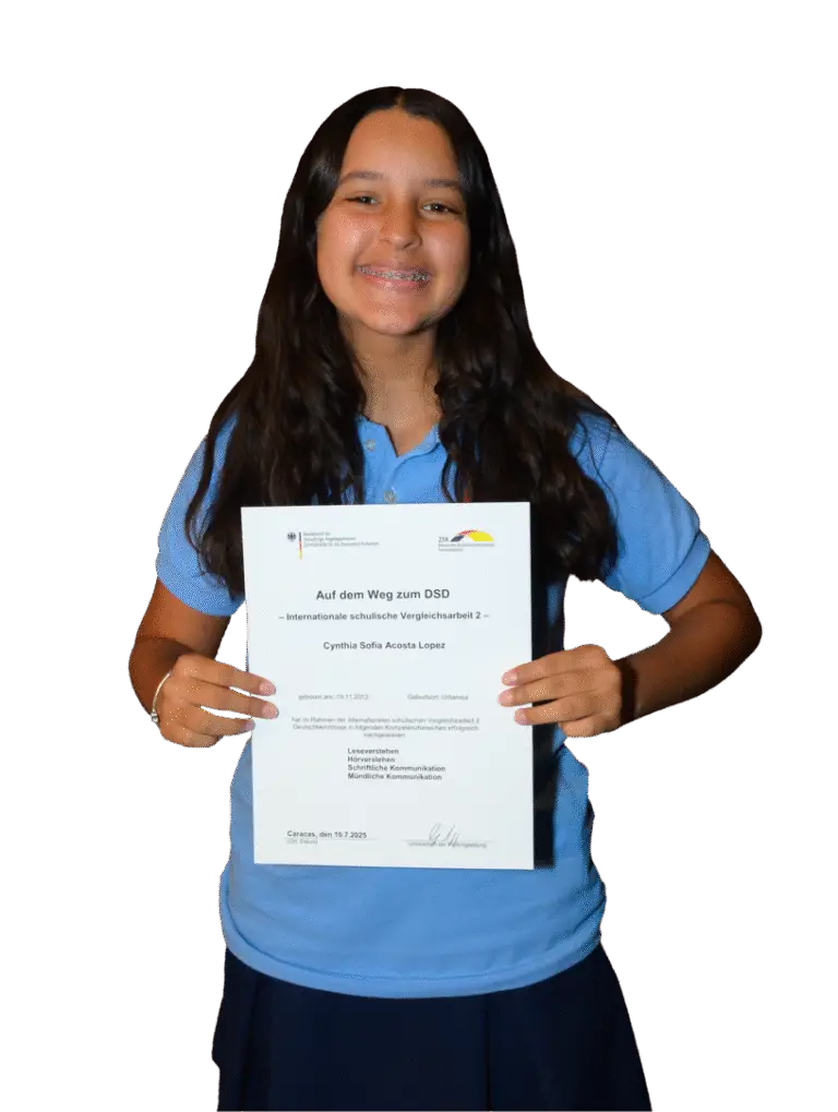 Unsere Schule begleitet die Schülerinnen und Schüler in ihrer Karriere auf dem Weg zum renommierten Deutschen Sprachdiplom (DSD) der Kultusministerkonferenz I und II . Die Lehrkräfte richten ihren Unterricht gezielt auf den Erwerb der Fertigkeiten aus, die in den von der Bundesrepublik Deutschland gestellten Prüfungen für Deutsch als Fremdsprache im Vordergrund stehen und die Schule stellt die logistischen Rahmenbedingungen.